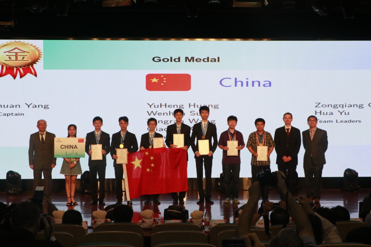 中国队获IYPT2018团体金牌(左四为beat365许乔智同学)