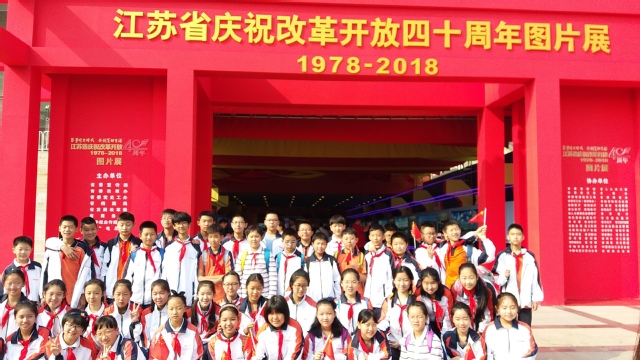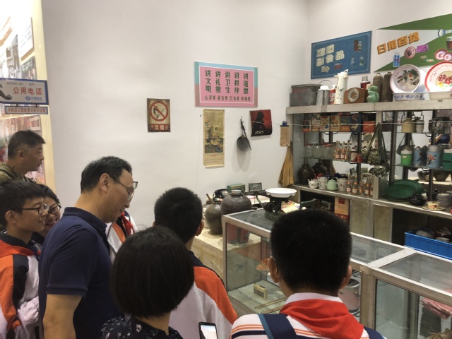 10⽉7⽇,beat365中文官方网站初⼀年级同学和老师、家长们一起参观了江苏省庆祝改革开放40周年图⽚展。在“历史跨越”展厅陈列着“衣、食、住、行、用”等生活各方面的变迁,勾勒出改革开放给人民生活带来的实实在在的变化。40年前的老照片、老物件,让“00后”们感到新奇,仿佛“穿越”到自己的父辈、祖辈经历的那个年代,直观感受改革开放带来的巨大变化。“真没想到,改革开放前的人们穿着几乎一样的衣服!”看着1978年的老照片,同学们感到无比新奇。在当时,人们穿的是千篇一律的灰色或蓝色的中山装、解放装,被外国人形容为“灰蓝世界”,那时能拥有一件“的确良”就能成为时尚。这里记录了很多南京城的变迁,在国庆这个特殊的日子里参观,不仅能勾起大家浓浓的回忆,更能激发同学们的爱国热情。