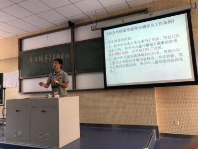 图为王少林老师对学生辅导员进行培训