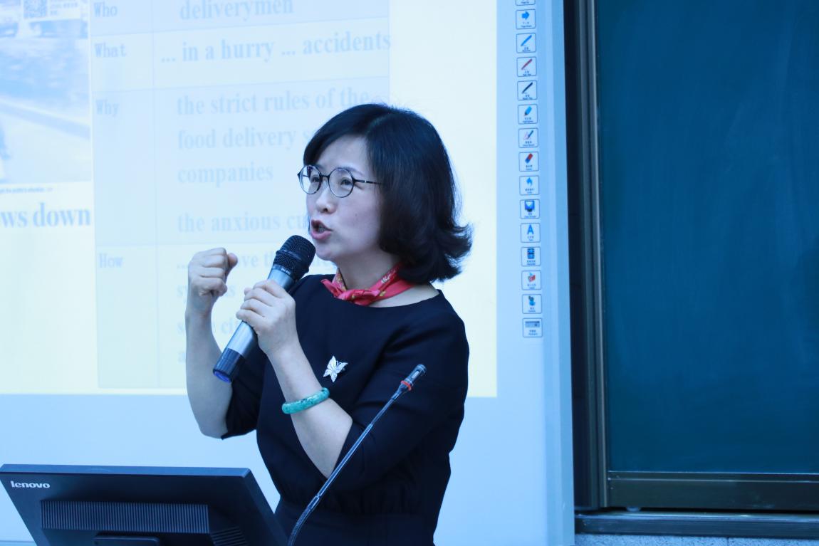 最后,李爱云老师还针对“报刊阅读与英语学习”做了题为《核心素养背景下的英文报刊阅读教学》的精彩讲座。讲座中她分享了beat365英语报刊阅读教学的做法,以实例为切入口结合前沿的教育理论和方法,向与会老师传递了核心素养的实质以及在课堂落实的具体操作办法。她的演讲引起了与会老师的高度共鸣,激发了大家的教科研热情和通过各种渠道培养学生英语核心素养的信心。