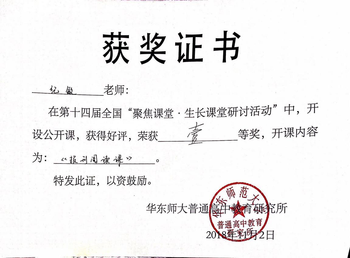在初中英语分会场,天一中学的潘怡婷老师和纪敏老师分别展示了一节初中英语报刊阅读课的同课异构。潘老师带领学生就文本展开了充分的研究和讨论,她在课堂上注意培养学生的阅读技巧与学习能力,并把“立德树人”穿插在教学的每一个环节,师生配合默契,课堂教学目标达成度高。纪敏老师则另辟蹊径,她的课堂以caption为线索、change为主题,一明一暗两条主线贯穿始终。她在课堂上始终关注学生的反应和表现,并适时调整自己的教学预设。针对学生的回答,纪老师不断追问,激发学生的高阶思维,碰撞出许多思维的火花,让课堂变得灵动而有意义。天一中学的学生在课堂上踊跃参与、积极思考,和老师产生了认知和思想以及情感上的共鸣。最后,纪敏老师获得本次课堂展示一等奖,她的课堂充分展示了南外鲜明的英语教学特色和老师自身优秀的综合素养。