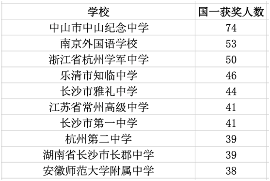 提高组全国一等奖获奖人数十强统计表