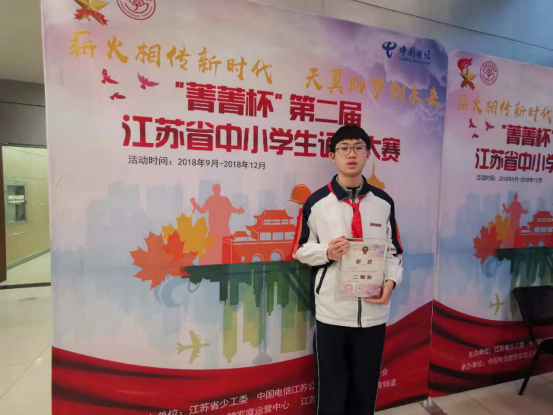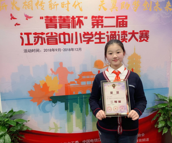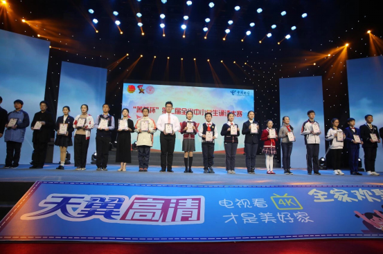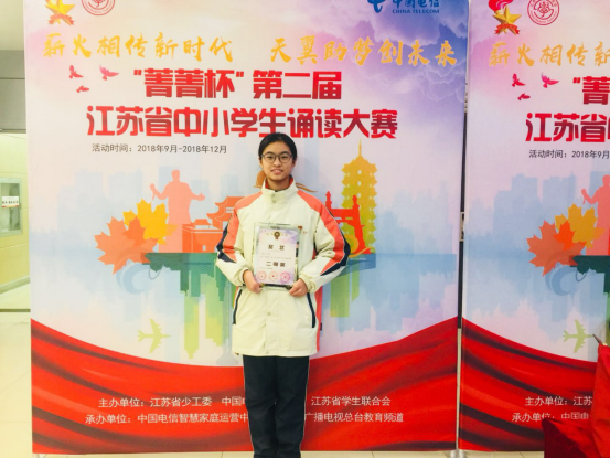 “菁菁杯”第二届全省中小学生诵读大赛由江苏省少工委、中国电信江苏公司、江苏省学联共同主办,中国电信智慧家庭运营中心、江苏教育频道共同承办。大赛自今年九月启动,吸引了来自全省500余所学校的5000多名选手踊跃参加。经过海选、市级初赛、高清电视复活赛等环节,共有100名最优秀选手闯入全省总决赛。各参赛组别共产生一等奖4名、二等奖8名、三等奖13名。