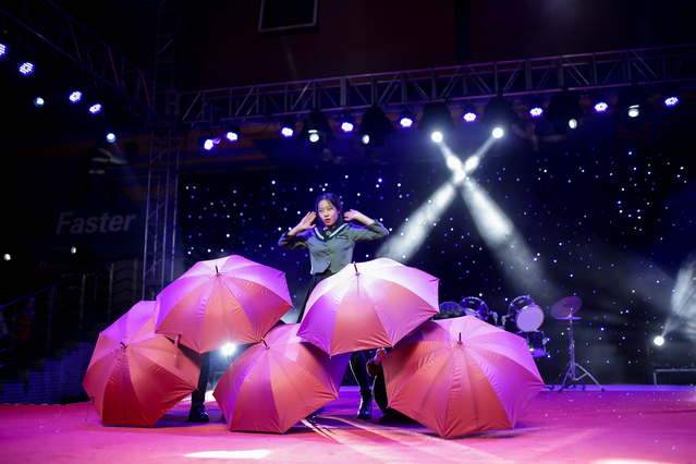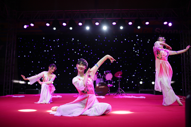 舞台上节目表演更是丰富多彩,令人目不暇接。BUNGEE G带来的舞蹈《peek-a-boo》 动感十足,队形变化多样、整齐。她们的舞姿释放在星光灿烂的舞台上,光彩夺目、魅力四射,瞬间点燃了现场气氛,引来的喝彩和掌声不绝于耳;芭蕾舞社社员的节目《桨声灯影》令人耳目一新;摇滚社的《山海》、周芸洁的《笑忘书》、郁嬿、夏靖怡、韩冰仪的《燕归巢》等也都十分动听。
