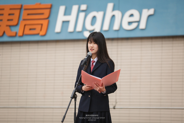 主持人一:充实、坚定的南外人,以实干的态度、巧干的智慧、务实的行动,走过了一个难忘的2018。下面,有请学生会孙雨禾同学,谈谈她在过去的一年里是如何在实干中磨练自己的。