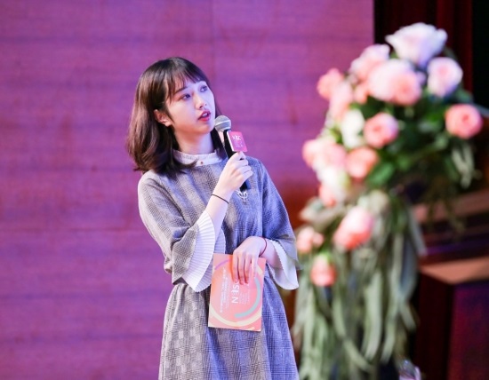 校友杨华梦,2011年被保送进清华大学,剑桥硕士毕业生,在本次大赛中担任大学组主持人。
