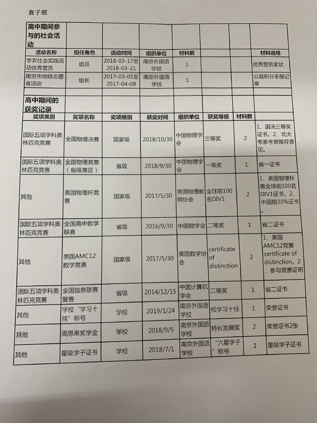 3.经本人申请,现将自主招生获奖情况申报材料公示如下:
