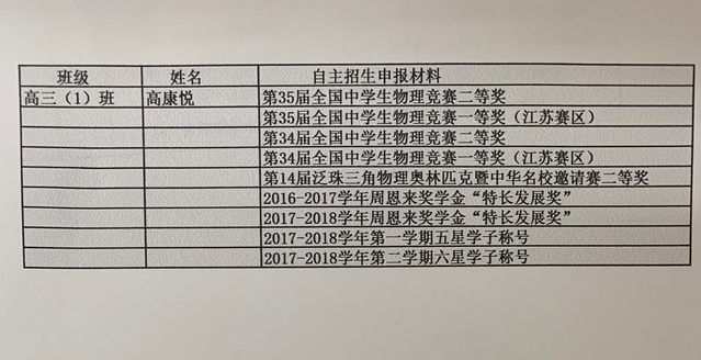 3.经本人申请,现将自主招生获奖情况申报材料公示如下: