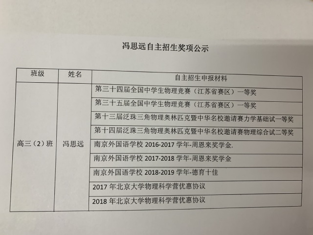 3.经本人申请,现将自主招生获奖情况申报材料公示如下: