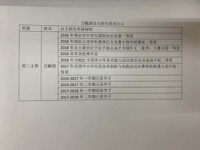 3.经本人申请,现将自主招生获奖情况申报材料公示如下: