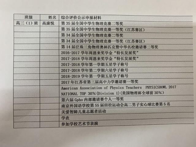 3.经本人申请,现将综合评价获奖情况申报材料公示如下:
