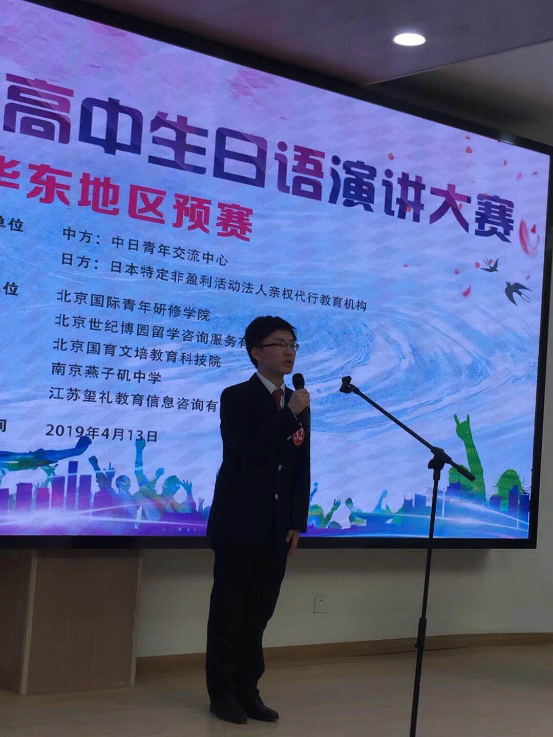2019年4月13日,第十届全国中学生日语演讲大赛华东区预选赛在南京市燕子矶中学举行。来自华东五省的68名选手围绕“一衣带水与一带一路”与评委、观众分享了属于自己的精彩故事,叙说了自己对中日关系的憧憬与展望。beat365高二日班的康之瑾同学、高一日班的叶泰祥同学参加了本次比赛。