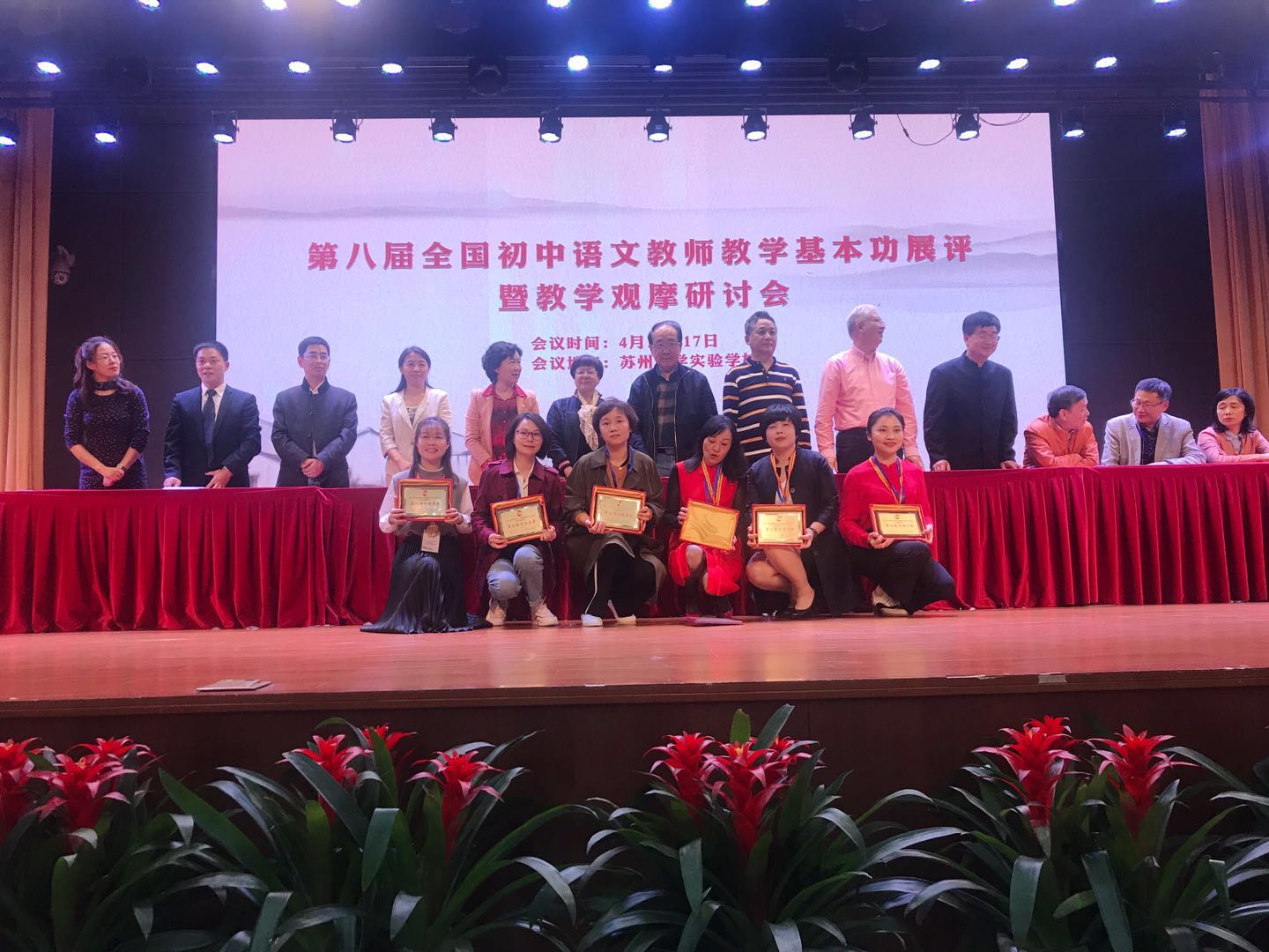 2019年4月14日至17日,第八届全国初中语文教师教学基本功展评暨教学观摩研讨会在苏州隆重举办。beat365洪瑜老师和刘慧老师代表江苏省参加教学基本功展评优秀课例评比(光盘课)均获一等奖,洪瑜老师获得了最佳教学仪态奖。在大会论文评比中,洪瑜老师论文获一等奖,刘慧老师论文获二等奖。