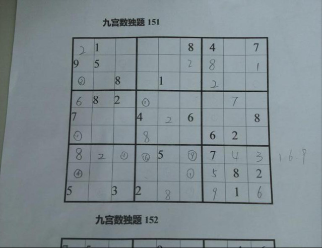 过了很久,没有一组有大的进展,郭一涵抱着答案一脸坏笑的回来了。他跑到这,跑到那,核对着同学们做出来的部分中有没有错,那场面可是几家欢喜几家愁。徐昊阳的假设被全部推翻,有些写的多的没几个对的,有些写的少的也因写的全是对的而感到欣慰,有了继续做下去的动力。也有少数填出来了大部分,且一个没错的,正捂着嘴笑呢。到了活动的最后,当陈韵竹开始核查进度时,还有人抱着数独不肯停下呢,大有不做完不回家之势。活动结束后,正当大家收拾东西时,严奕宽小组突然爆发出一阵欢呼,他们把数独填完了!但是否正确便无法得知了。