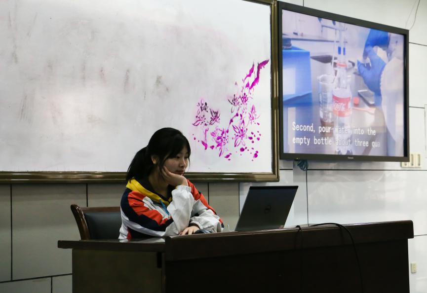 本学期初,中方化学老师王晓亚给这一届的10年级布置了一个课题——“化学视频秀”。同学们组队选择自己感兴趣的实验,将每次探索、实验的过程用视频、照片的形式记录下来,实验完成后由学生自己创意编辑,完成实验视频并参加最终的展示和答辩。
