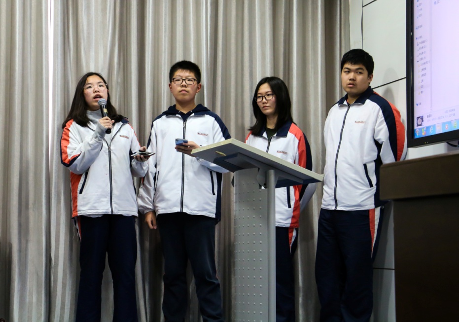 4月29日下午,4位加方科学老师受邀担任视频秀展示的评委。视频里的实验现象明显、新奇有趣——“法老之蛇”、“消失的情人节”、“旧币展新颜”、“化学蛋糕”…… 当天,来自4个班的18个视频都配上了英文解说和字幕,评委们看得津津有味、赞不绝口。同学们全英文的答辩,表达流畅、应变得体,获得外教评委的高度肯定。