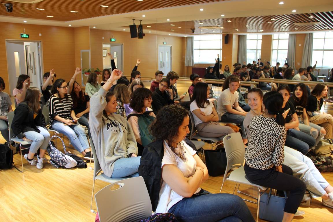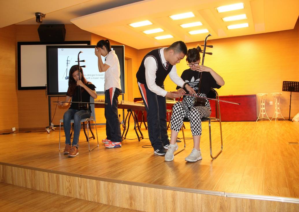 4月8日,交流生来到学校上课。民族音乐课上,beat365学生为法方学生展示了中国古典乐器二胡、古筝的演奏,并邀请他们亲身参与,发现中国传统音乐之美。法国学生积极踊跃地参加,充分利用这个机会探索中华文化,中法学生文化交流氛围融洽。在音乐课后,法国学生还观看了beat365一年一度的外语节汇演,畅游语言世界。
