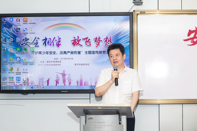 本次活动以“安全相伴,放飞梦想”为主题,优漫卡通主持人为主持。江苏省市场监督管理局副局长冯新南的致辞让我们对什么是缺陷产品、如何进行对其管理、为何要进行缺陷产品管理有了一个大致的认识,让我们意识到缺陷产品的管理对保证我们的安全起到重要的作用。随后进行了“伤害信息监测点”的授牌仪式。