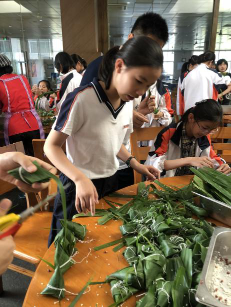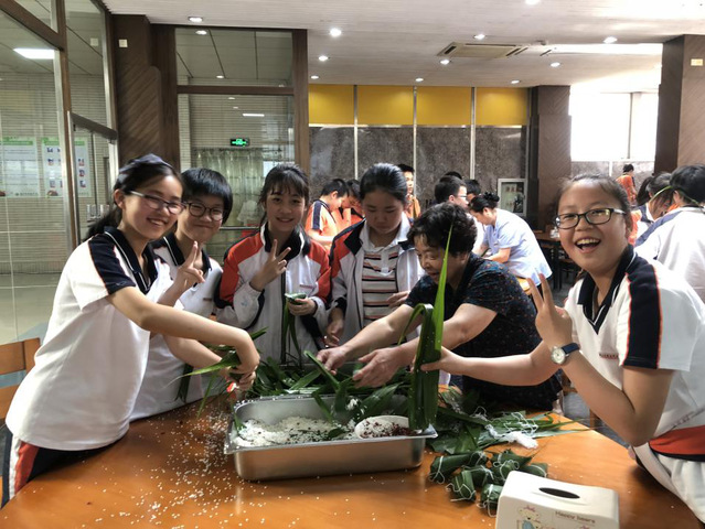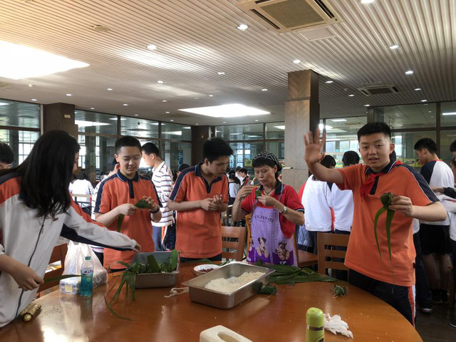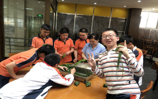 2019年6月3日,初一七班的全体成员们于下午3点40分在食堂二楼开始了“一束粽叶,欢乐永存”端午节主题活动。全班共分为7组,每组都有一位阿姨教我们包粽子,大家学得十分认真。粽子是端午节的象征,为了纪念屈原从而后世便有了在端午节期间包粽子的习俗。“粽”跟“宗”音近,所以端午节吃粽子还有“光宗耀祖”的寓意,除此之外,粽子又与众子谐音,所以很多人会赠送九子粽,希望人丁兴旺。