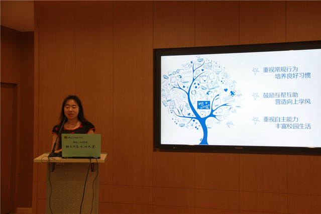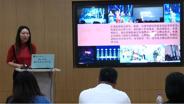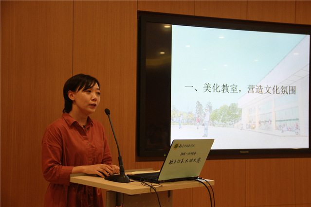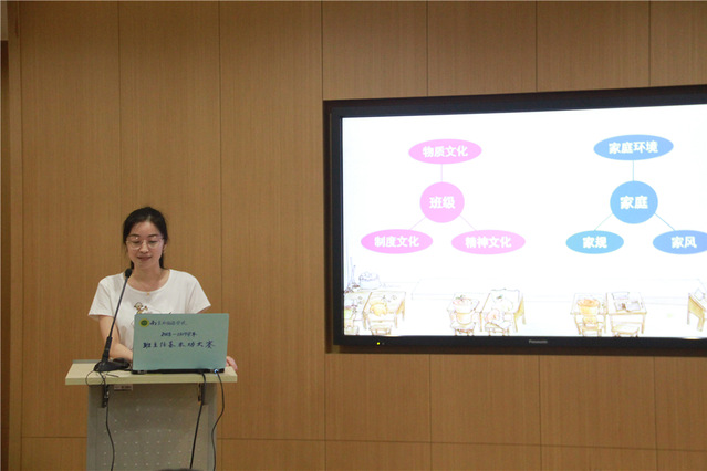 在德育工作带头人顾青老师主持开场白后,精彩的班级文化建设风采展示开始了。八位选手按抽签顺序或爱心满满、或激情洋溢、或理性沉稳、或从容优雅地介绍了各自所带的年级和班级的特色,融理论与实践为一体。