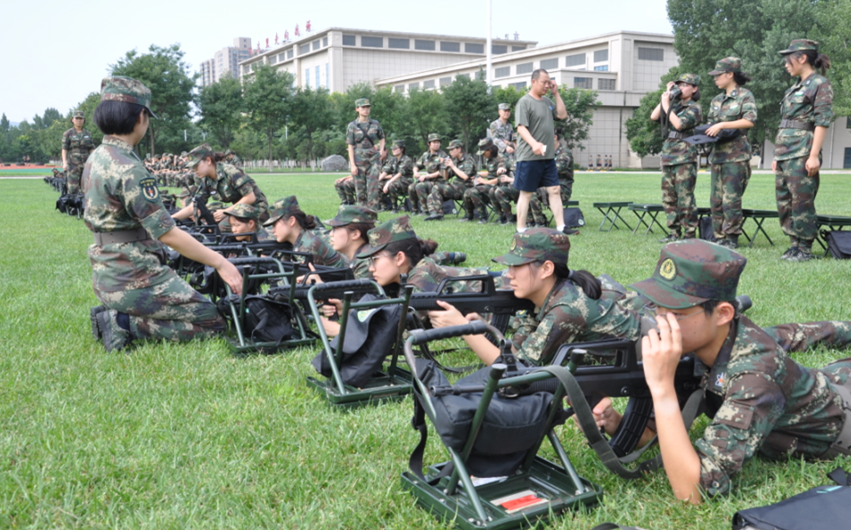 在轻武器射击场,同学们用尽全身的力量和精神,端稳枪线。最终茆丹辰打出43环,曹露宁打出39环,成绩计入了团队总分中。