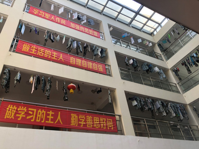 8月17号清晨5点半,一声有力的号角将同学们从睡梦中唤醒。睡眼朦胧中,大家似乎还没有忘记昨日第一次整理内务的局促混乱。整理内务包括洗澡、洗衣和就寝。“出门看列队,进门看内务”,内务不仅是军人对自己的基本要求,更是每一个参训的南外学子需要努力达到的目标之一。