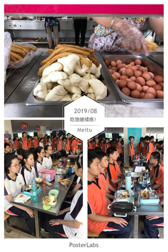 户外35℃的高温更能体现南外人不畏艰苦、不畏骄阳的精神。早饭过后大家学习了军体拳。偌大的操场上,同学们的喊声气势如虹,动作有力标准,即使额顶的汗水流入眼眶也不轻易放弃。在日光的照射下,水桶里的凉水都晒成了热水,但依旧不减南外学子学习的热情与毅力,这正是作为一名军人所需要的顽强品质。一个同学说,军训的苦超出了我的预期。但老师们说相信南外学子一定能够出色完成任务。明天我们继续努力!