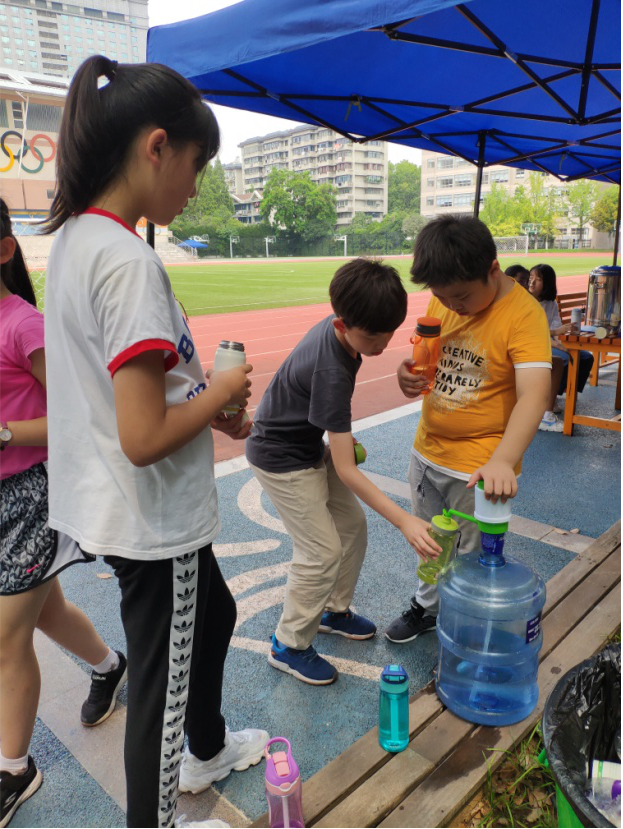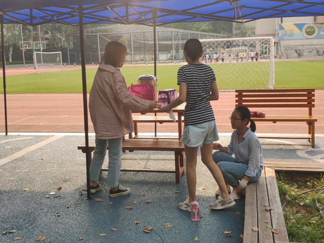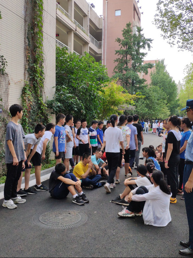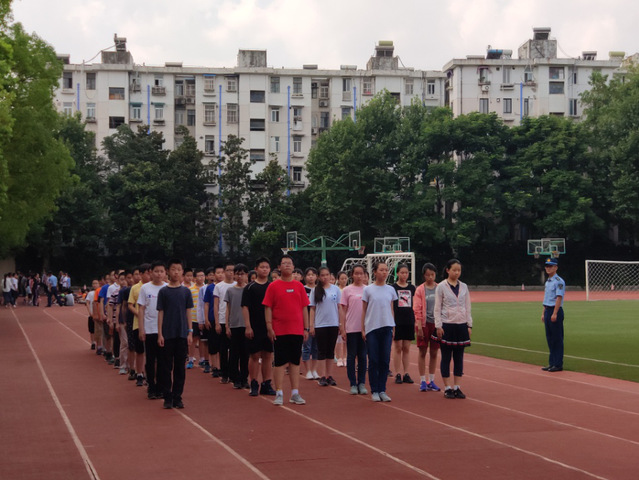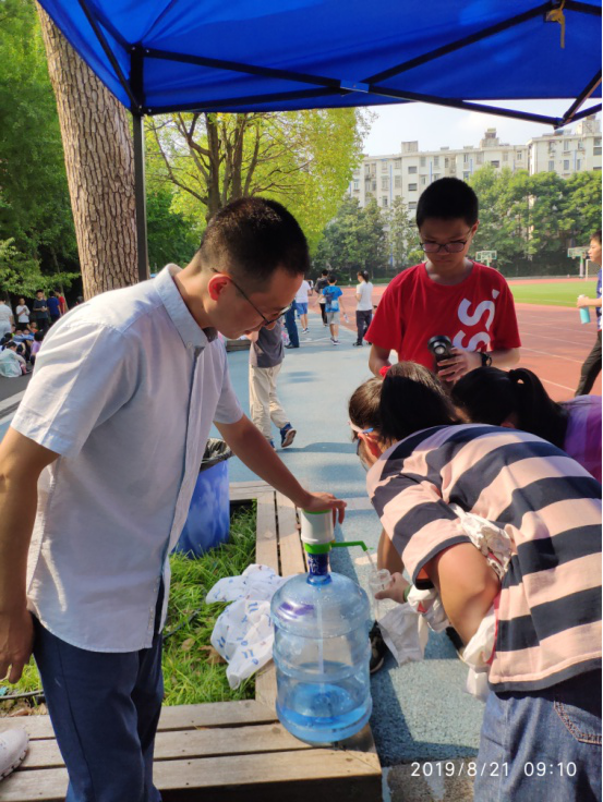 操场边,依旧是学生处老师、医务师老师们做好了应急防护措施、物管师傅们送来的一桶又一桶的纯净水,打水时老师同学的互助……他们的细心、帖心、关心有如春日的甘霖、夏日的凉风。训练场上,班主任老师随时记录下在教官带领下同学的进步。初一年级这个大家庭、十二个班级的团队精神就在团结与坚持形成和展现了!