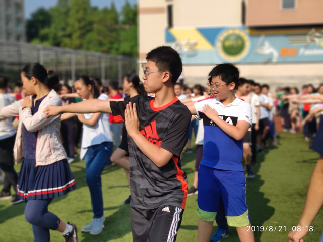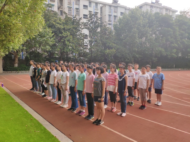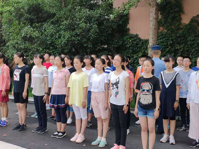 2019年8月21日,南外初一新生军训的第二天。骄阳下,操场上,一个个小身板儿蓄满了力量,在教官的带领下认真练习着。