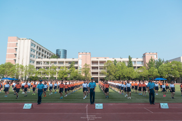 四面转靶时清脆的靠脚声,快速一致的速度令人赞叹;军歌表演时队形转换得迅速有力,歌声气势如虹让人振奋。《学习雷锋》《强军战歌》《团结就是力量》……激情豪迈的歌曲一首接一首响彻校园上空。歌声中洋溢着自信,洋溢着南外新生的热情,洋溢着同学们热爱祖国、热爱学习的壮志豪情!