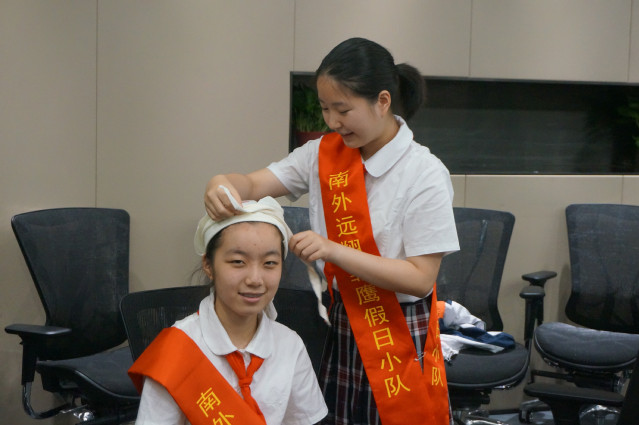 在寻访活动中,省人民医院的赵鹏程医生还为队员们上了一堂生动的急救知识课,胸部按压抢救,急救包扎……从理论到实践,同学们掌握了一门重要的急救常识和技术,受益匪浅!