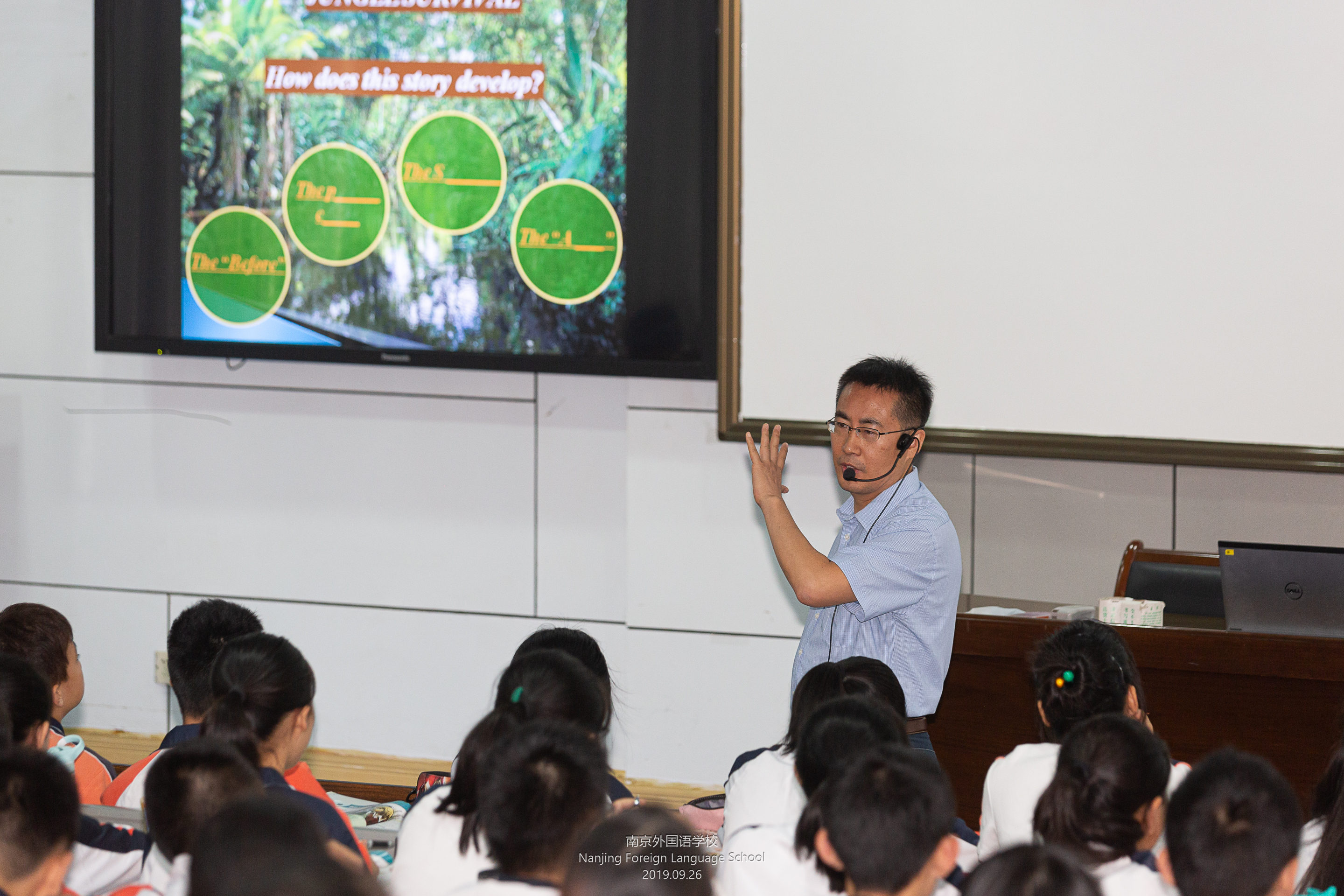 方老师以EIM教材第一册U10的阅读课作为授课內容,精心设计和组织了一堂阅读教学课。课文讲述了一个17岁女孩乘坐的飞机失事后,从高空坠落身负重伤后如何在亚马逊丛林幸存下来的励志故事。方老师先从两张图片的描述和联系导入,引入丛林幸存的故事主题,然后引导学生厘清文本的结构框架,再完成文本信息的探索。在探究文本的过程中,方老师不断变化提问的角度和方式,对学生进行思维启发,并创设情境让学生和故事主人公交流对话,让学生充分体会到丛林生存的挑战和艰辛,从而更加懂得热爰生活,珍爱生命。最后方老师设计了一个如果你是主人公,你能否在丛林幸存的开放性问题,学生们各抒己见,亮点频出,课堂讨论气氛热烈。方老师顺势引导学生总结了丛林幸存的重要因素,即丛林生存的技巧和永不放弃的信念,又回到了课文的标题,单元的主题,师生思维的碰撞闪烁出智慧的光彩。方老师的课教学设计巧妙,层次分明,尤其注重对学生思维的启发和培养,注重对学生思维品质的提升,并且充分体现了在英语课堂"立德树人"的育人理念,得到了听课老师的一致好评;同时听课老师对南外学生评价也很高,认为南外学生思维活跃,有思想,有见地,敢表达,语言能力强,综合素质高。