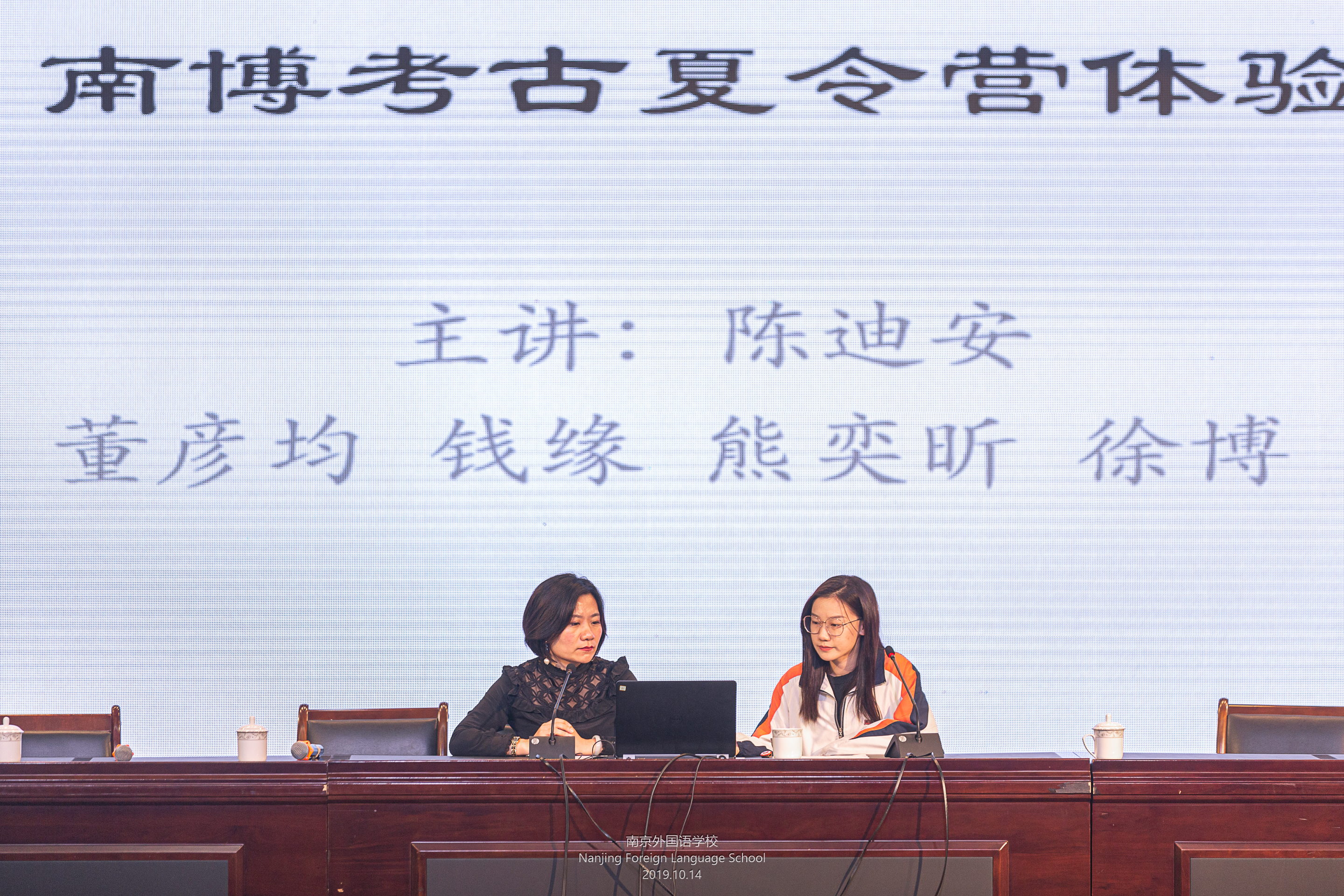 高二8班陈迪安同学代表暑假南外南博夏令营的所有同学进行了参营体验的分享:有观看考古现场发掘,学习如何使用洛阳铲,进行仿制文物的修复和绘制等,精彩纷呈的活动让初一同学羡慕不已。最后通过徐畅老师的详细介绍,使同学们对南博的夏、冬令营活动有了更深一层的了解,也对中国多姿多彩的手工业历史有了更加浓厚的兴趣。