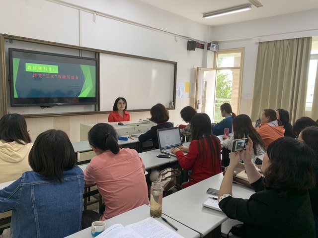 虽然本次讲座的主题是论文写作,但夏主编反复强调了阅读的重要性。她提出“让学引思、以读促写”。她认为老师们要提升阅读力,将“读者意识”贯穿写作过程始终;她建议大家跨界学习,全方位提高自己的知识积累;还要克服几种阅读弊端,比如碎片化阅读、随意性阅读、跟风式阅读等。她说,要想写出好文章,老师们应该多读教育、教学类专著和相关专家论文。她还以自己的经历现身说法,提倡多读杂书,建议老师们不妨做一些专题阅读和群文阅读,并需要深度阅读。