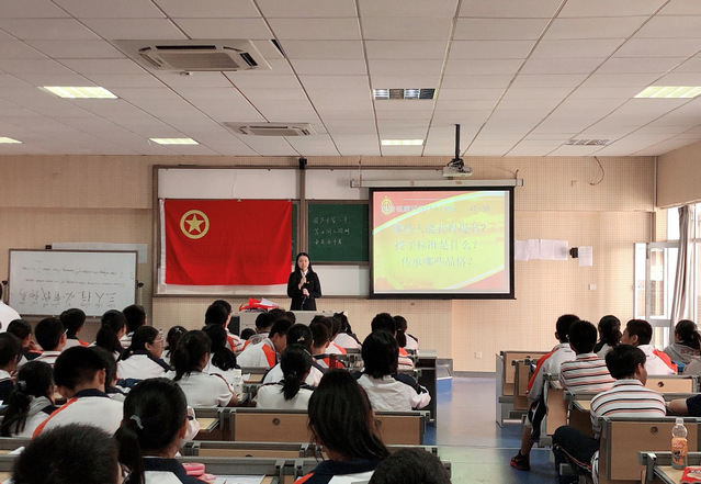 2019年10月21日,beat365中文官方网站2019-2020学年初二年级少年团校正式开课。各中队按照积分入团要求进行自主申报、审核和同学投票,共选拔出126名入团积极分子参加本期团校学习。他们带着强烈地入团愿望,在beat365阶梯教室上了他们的入团第一课。