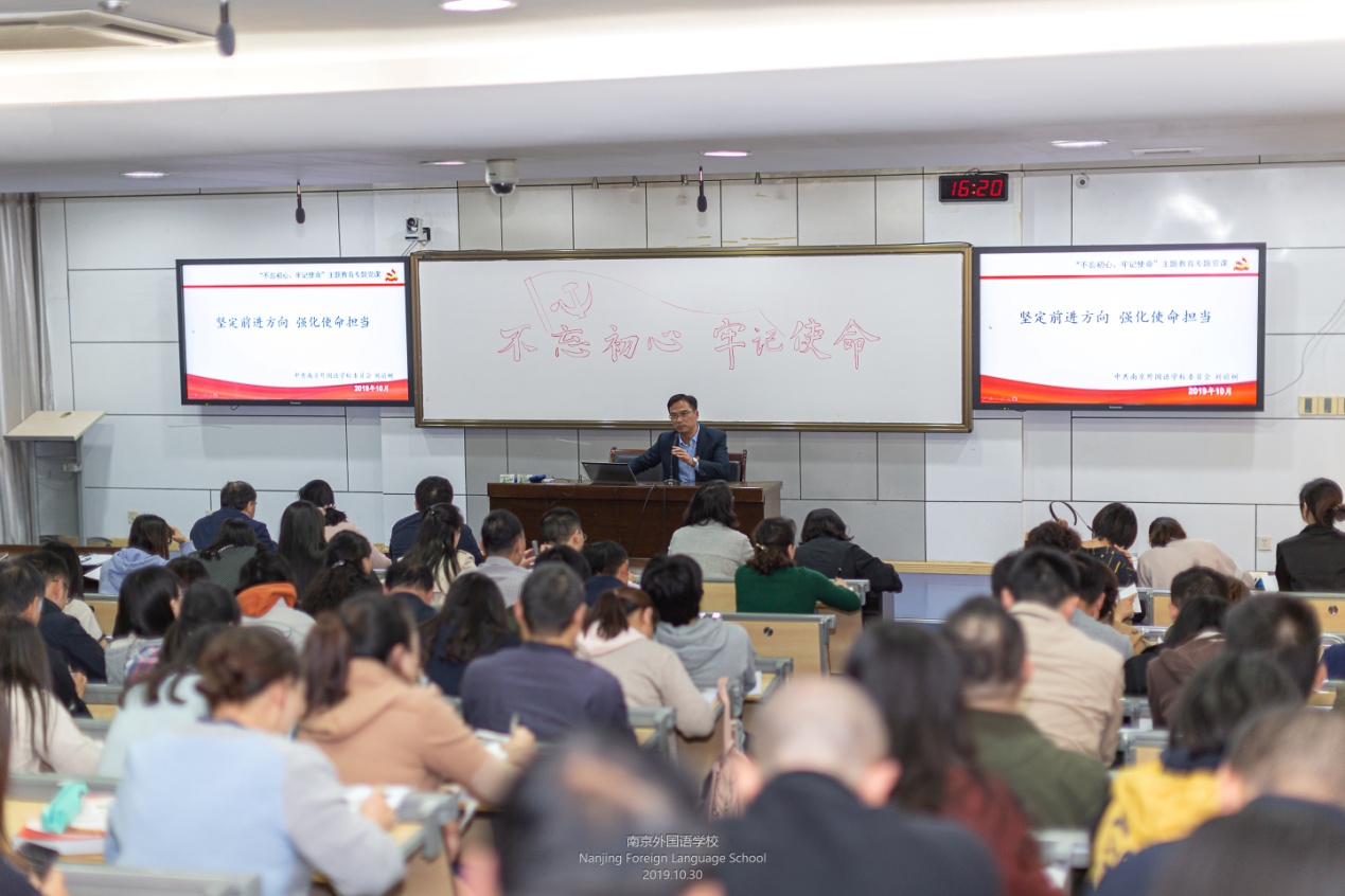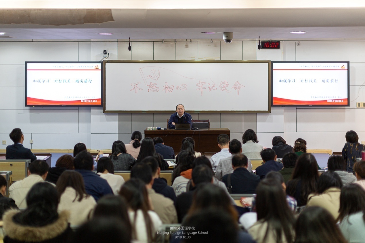 “提高政治站位,坚定为国育才的初心 ;把握办学方向,坚持素质教育的道路 ;遵循教育规律,激励改革创新的行动 ;坚持扎根中国,争创世界一流名校。” 校长邹正同志分享了他学习《习近平新时代中国特色社会主义思想》的心得体会。邹校长强调,为把南外建成首批省高品质示范中学,创建有中国特色的世界名校,我们要对标国际一流名校特别是参考对照各个名校的办学思路、课程设置、教学模式等,从南外培养“中国灵魂世界胸怀的现代人”的培养目标入手找差距。同时结合南外五十多年为国家培养外语外交高端人才的历史,对照国家现在对全球高端治理人才需求的角度,寻找南外在非通用语种开设、复语人才培养需要努力的方向。
