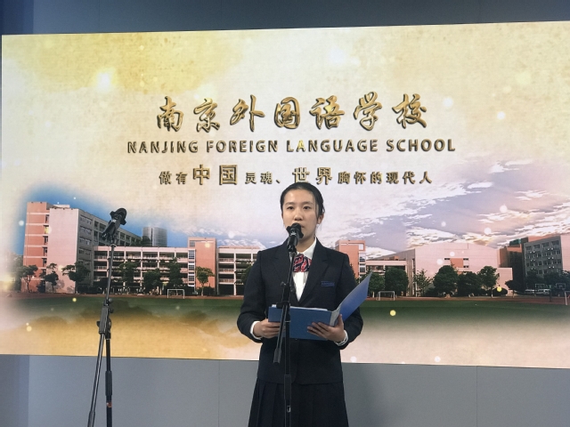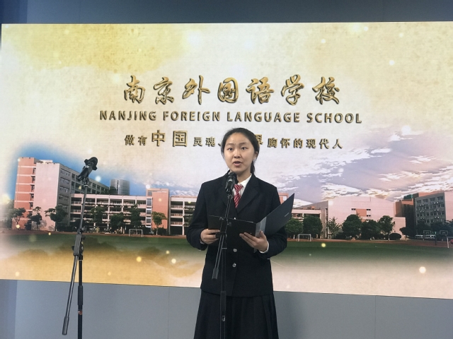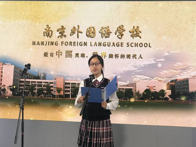 先别急,beat365一直开展的是外语读书节,现在我们有请高一德班的冯宇瑄学姐作为小语种班级的代表,带来她的演讲。