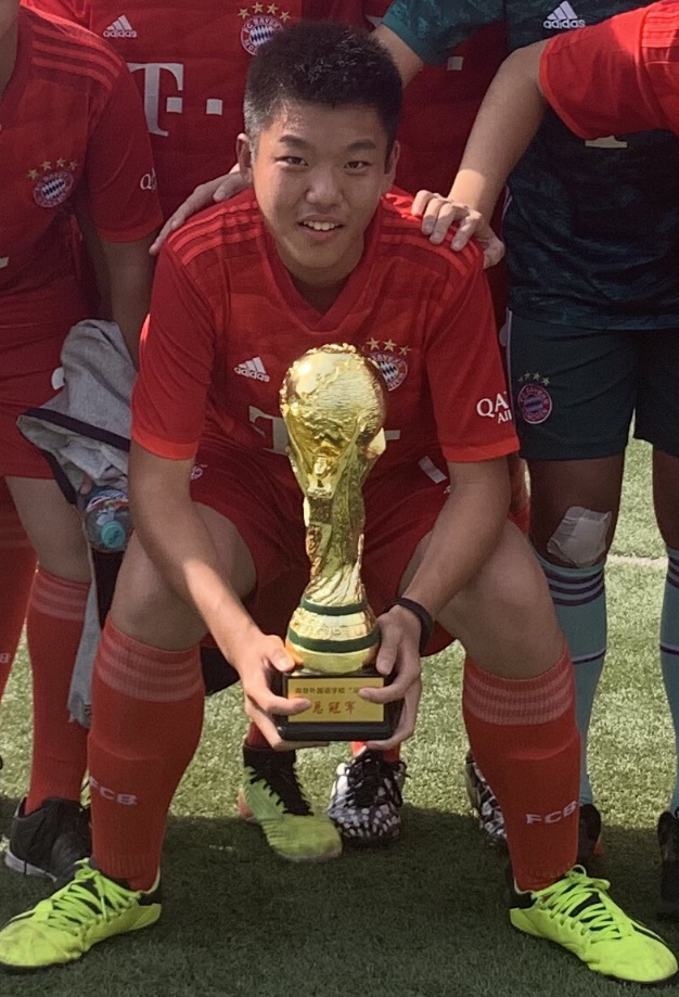 作为高一季军3班的绝对核心,他在小组赛对阵8班的关键时刻轰入绝杀,力保班级出线。在三四名决赛中他更是多次上演令人难以置信的风骚操作,并在常规时间点球被扑中柱后写意挑射破门。他精彩的表现也使他获得了高一足王杯的金球奖和金靴奖,实现个人荣誉大满贯。然而他左右比赛的神奇远不止于此,他还在多场比赛中担任边裁,奉献了精彩而有趣的表现。他也被戏称为“高一足球教父”。