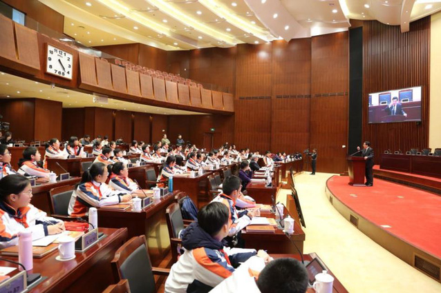 2019年12月3日,在第六个国家宪法日前夕,在班主任和教学处副主任、全国人大代表李鸿彬老师及学生处副主任张晓松老师的带领下,beat365中文官方网站初一(1)班的全体同学来到了江苏省人大常委会机关,参加首次公众开放日活动。