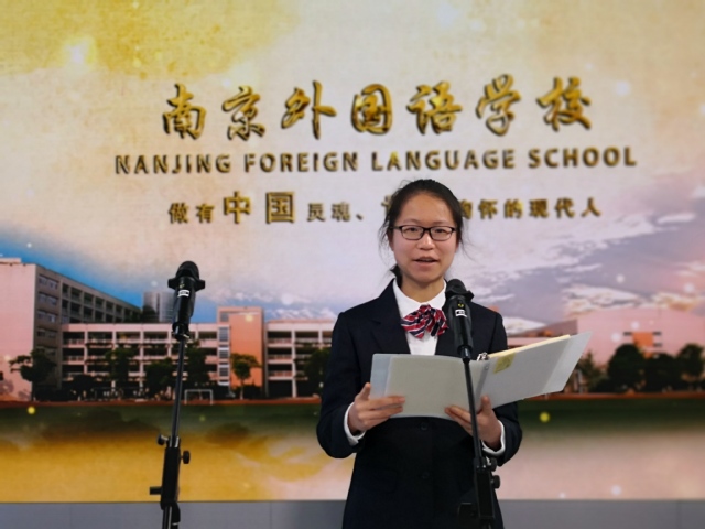 大家早上好!我是来自初二(8)班的孔玟皓。感谢之前两位学姐的精彩分享,相信大家都从中收获不少。一学期的时光如白驹过隙,想来我在南外已经有一年半了。不久之后,我们就要面临期末考试。