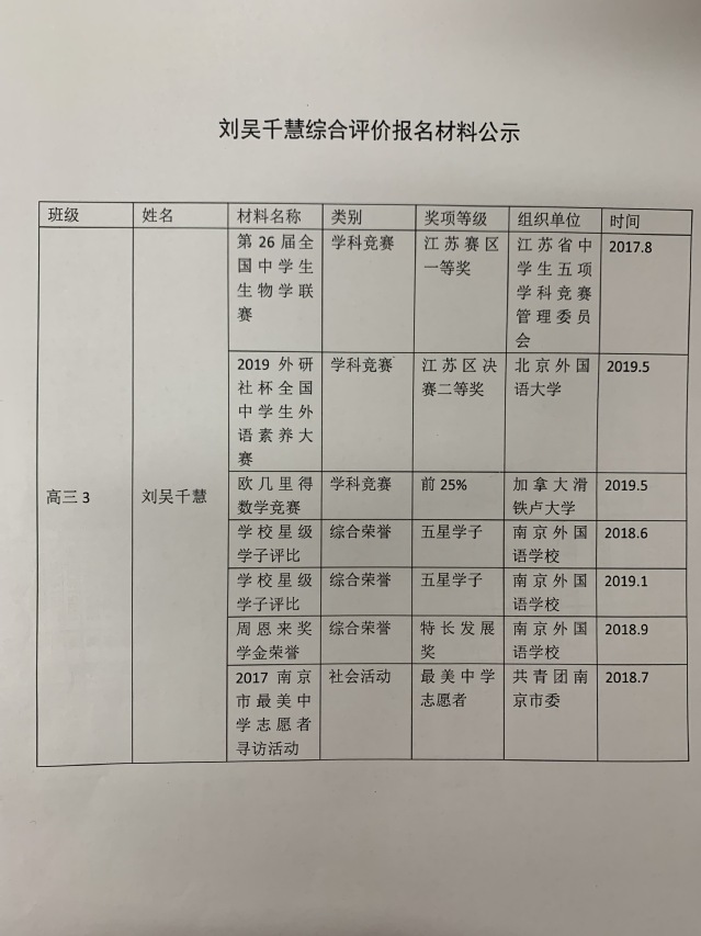 3.经本人申请,现将综合评价获奖情况申报材料公示如下: