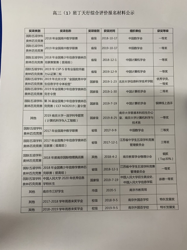3.经本人申请,现将综合评价获奖情况申报材料公示如下: