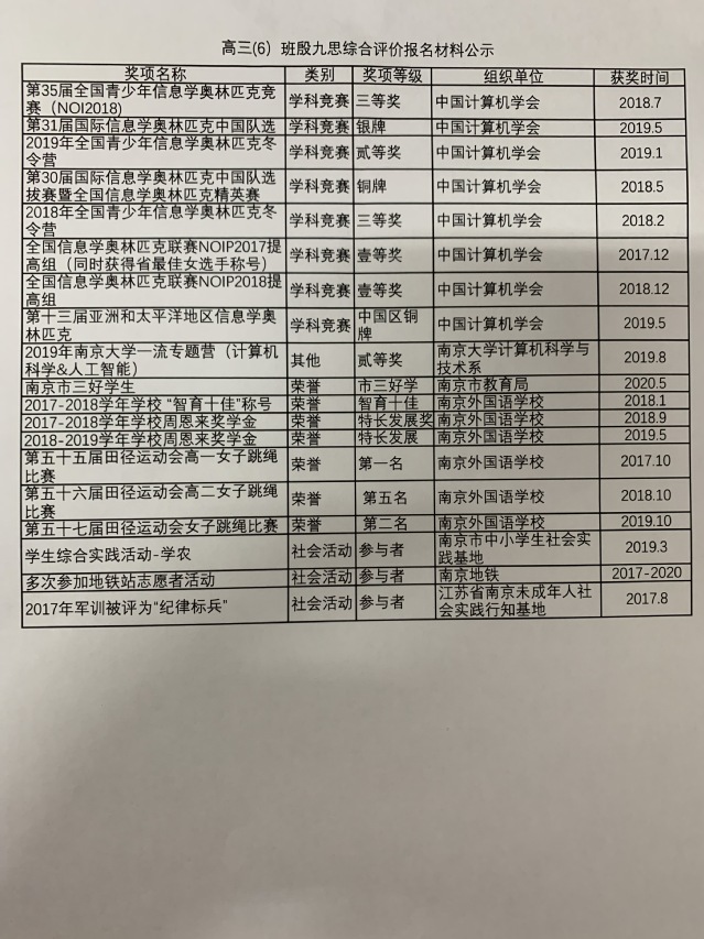 3.经本人申请,现将综合评价获奖情况申报材料公示如下:
