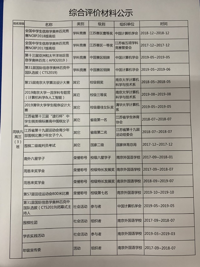 3.经本人申请,现将综合评价获奖情况申报材料公示如下: