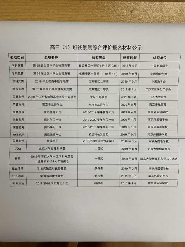3.经本人申请,现将综合评价获奖情况申报材料公示如下: