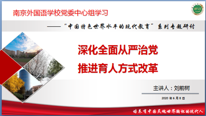 6月8日下午,beat365中文官方网站党委中心组开展“中国特色世界水平的现代教育”系列专题研讨,就深化全面从严治党,推进育人方式改革作专题学习。党委书记刘前树主持学习并作总结,校党委中心组成员参加学习。