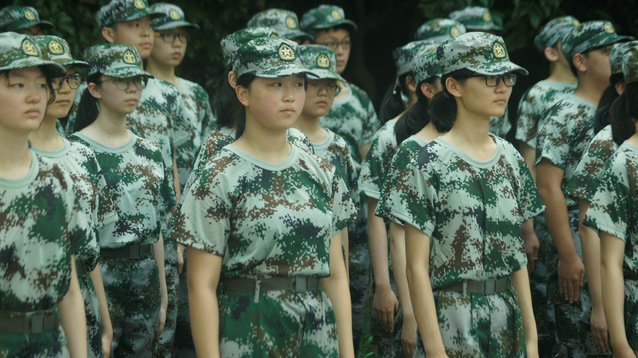 经过严苛的选拔,每连约四人被选入国旗班。国旗班,承载着最高荣誉的同时,也承担着最大的压力和训练强度。今天,正式队员面临的任务是“蹲”。 ‘“膝盖不许碰地”“碰到地面的喊‘报告’”一时间,喊声此起彼伏。“坚持不了的就走!”教官吼着,喊声停止,每个人都咬紧牙关,整个身体的重量使右脚前脚掌失去知觉,但无人喊累,坚持是所有国旗班队员的信念。少年们听从团队号召,被下令,去执行,被管教,有规矩。