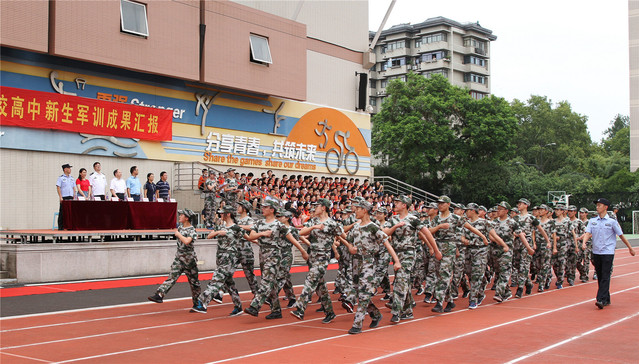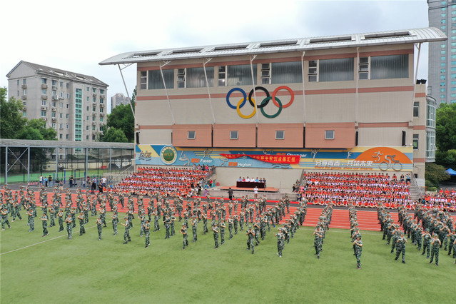 “beat365中文官方网站2020级高一新生军训汇报演出现在开始!”随着总教官一声令下,迷彩装的我们,迈着整齐的步伐,一个个方阵开始接受检阅。经过军训砺练的新生,精神饱满、军姿威严、队列整齐,嘹亮的口号响彻校园上空。迎着校旗,十二个连队依次进行分列式表演。正步走过主席台前,大喊着呼号,头统一望向右方,好不壮阔!好不抖擞!新学子朝气蓬勃、奋发向上的精神风貌,就在这一个个方阵中展现。