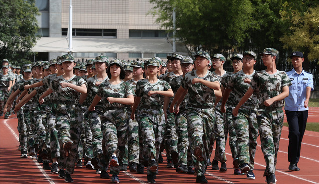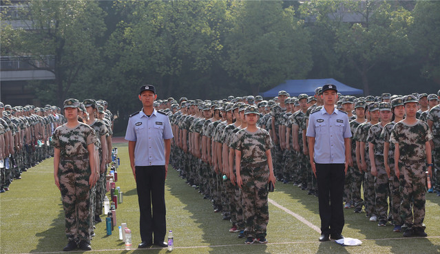 我们牢记擒敌拳的每一招,我们紧跟军乐的鼓点踏好每一步,我们努力地抬高走正步的腿、保持好端起来的臂,期望给七天的军训生活画上圆满的句点。