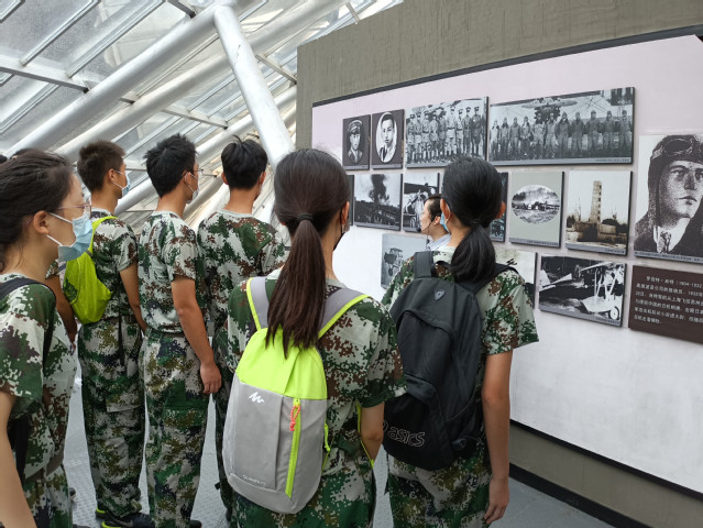 陈怀民时任第4航空大队第21中队飞行员。在1938年武汉“4。29空战”中,他在击落一架敌机后被五架敌机围攻,飞机油箱着火,本可跳伞逃生的他毅然驾机撞向敌机,成为与敌机同归于尽的第一人。在之后的参观中,我们看到了他的部分遗物,有手套,还有和他父亲共同使用过的书篓。陈怀民的父亲早年参加同盟会,进行革命。他将对祖国的忠诚和对人民的热忱传递给了儿子,一朝洒热血,换今中华盛世。